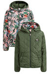 Cette veste regular fit se porte des deux côtés. Un des côtés a une couleur unie et l'autre un motif fleurs. Modèle à capuchon, fermeture éclair avec protège-menton et deux poches fendues. Doublée.