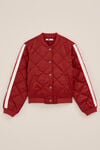 L’article favori de toutes les filles. Cette veste d’aviateur a une coupe regular fit, un col rond et des manches longues avec un ruban et un passepoil d'aspect satiné sur les côtés. Les poignets côtelés, la fermeture à boutons-pression et le motif matelassé la complètent.