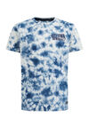 T-shirt de pur coton à effet tie-dye et application 3D sur la poitrine. Modèle à col rond et manches courtes.