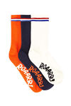 Set de 3 chaussettes de fin jersey de mélange de coton doux à tige côtelée avec élastique à la cheville. Modèle à détail de couleur dans le haut et texte dans le bas.