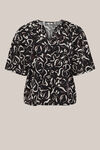 Indispensable dans votre garde-robe. Ce chemisier présente une coupe décontractée, un col mao et une fermeture à boutons dissimulés. Les manches courtes, avec un détail de plis, donnent un peu plus de forme. L'impression abstraite de feuilles crée un look frais et élégant.