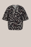 Facile, léger et légèrement différent. Ce chemisier présente une coupe décontractée, un col mao et une fermeture à bouton caché pour un look sobre. Les manches courtes et larges lui confèrent une belle coupe ample. L’impression à motifs de feuilles sur l’ensemble crée un effet ludique et moderne.