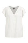 Top regular fit de viscose à motif et fermeture boutonnée. Modèle à col en V et manches courtes.