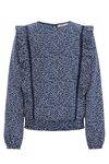 Chemisier regular fit de polyester recyclé à motif et volants. Modèle à col rond à fermeture boutonnée et manches longues.