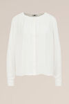 Découvrez la commodité d'une élégance sans effort. Ce chemisier de coupe regular fit en qualité tissée présente un look satiné brillant, une fermeture boutonnée dissimulée et des manches longues. Un col rond et des détails plissés complètent l'article.