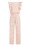 Combinaison de coton regular fit à motif, ruchés et détails pailletés. Modèle à col rond, jambes droites et taille élastiquée.