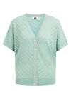 Gilet de mélange de coton regular fit à fil pailleté et fermeture boutonnée. Modèle à col en V et manches courtes.