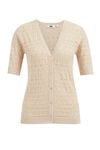 Gilet regular fit de fin jersey à motif ajouré. Modèle à col en V et manches courtes.