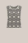 Un look accrocheur pour votre garde-robe de tous les jours. Ce gilet sans manches présente une coupe classique, une encolure ronde et un motif au crochet en noir et blanc cassé.
