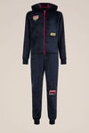 Grenouillère regular fit de qualité polaire à écussons et capuchon. Modèle à manches longues, fermeture éclair, deux poches fendues et jambes étroites.