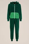 Grenouillère regular fit de qualité teddy à capuchon avec applications, manches longues, fermeture boutonnée, deux poches fendues et jambes longues.