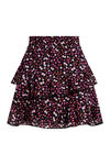Jupe de qualité tissée à superpositions et motif fleurs. Modèle à jupon et tombant au-dessus du genou.
