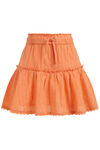 Jupe-culotte de coton regular fit à structure et bord de dentelle. Modèle à taille élastiquée avec cordons de serrage.