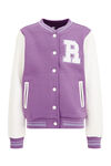 Blouson d’aviateur regular fit de coton à broderie, fermeture à boutons-pression et deux poches fendues. Modèle à col rond et manches longues contrastantes.
