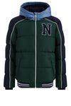 Manteau matelassé regular fit de qualité imperméable avec badge devant et derrière. Modèle à capuchon, fermeture éclair avec protège-menton, deux poches fendues à bouton-pression et doublure de polaire.