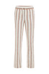 Pantalon slim fit de mélange de lin à rayures avec deux poches fendues et deux poches passepoilées. Modèle à jambes étroites et taille élastiquée avec cordons.