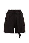 Short de mélange de viscose et de lin avec ceinture à nouer amovible et taille élastique. Modèle à poches fendues, taille haute et jambes larges.