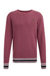 Pull regular fit de mélange de coton à structure et bords contrastants. Modèle à col rond et manches longues.