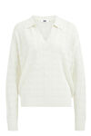 Pull regular fit de viscose à motif ajouré. Modèle tricoté à col polo et manches longues.