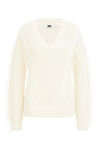 Pull regular fit de mélange de coton à torsades et franges. Modèle à col en V et manches longues.