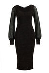 Robe regular fit de qualité finement tissée à fils pailletés et structure côtelée. Modèle à col en V et manches longues semi-transparentes. La robe tombe sous le genou.