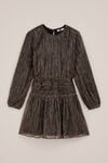 Elle brille de plaisir ! Cette robe de coupe regular fit présente un col rond, des manches longues avec poignets élastiques et un nœud à la taille. La couche supérieure transparente avec des fils pailletés tombe sur une sous-robe noire. Fermeture par bouton au dos. A avoir !