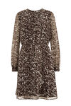 Robe regular fit de polyester recyclé à motif et taille élastique. Modèle à col rond à fermeture boutonnée et manches longues. La robe tombe jusqu'au genou.