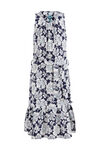 Robe de mélange de coton loose fit à motif et ceinture à nouer. Modèle à col rond et volants dans le bas.