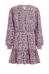 Robe regular fit de polyester recyclé à motif et fermeture boutonnée. Modèle à col rond, manches longues et taille élastiquée. Robe à volants dans le bas