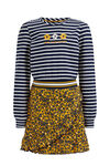 Robe de coton regular fit à motif, ruchés et broderie. Modèle à col rond, manches longues et taille élastique.