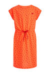 Robe regular fit de qualité tissée à motif à pois et cordons à la taille. Modèle à col rond et manches courtes.