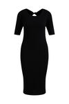 Robe midi regular fit de mélange de viscose à structure côtelée et cut-out derrière. Modèle à col rond et manches courtes.