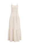 Cette robe longue regular fit attire tous les regards. Avec son design ajouré et ses jolis volants, vous vous sentirez élégante sans effort. Les bretelles spaghetti réglables et la ceinture à nouer garantissent une coupe parfaite, tandis que le jupon vous permet de rester à l'aise toute la journée. Sans parler de la charmante encolure ronde qui complète l'ensemble.