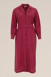 Le mélange parfait de style et de confort. Cette robe se ferme par un bouton, présente un décolleté en V et des manches longues pour un look élégant. La ceinture à la taille lui confère une touche féminine, et les poches fendues la rendent également agréablement pratique.