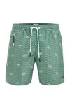 Short de bain regular fit de polyester recyclé à 2 poches fendues avec doublure de mesh, poche ticket et poche passepoilée derrière avec fermeture éclair. Modèle à slip en mesh et cordons à la taille.
