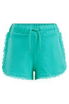 Short de coton regular fit à détails de dentelle. Modèle à jambes étroites et cordons à la taille.