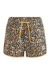 Short-sweat de coton regular fit à motif léopard et broderie. Modèle à ceinture élastique à cordons et jambes étroites à bords contrastants.