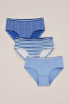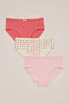 Indispensable dans le tiroir. Ces trois slips sont conçus pour rendre chaque jour plus amusant. Avec des tailles élastiques pour le confort, des nœuds pour l'amusement et des imprimés ou des fils pailletés pour la finition.