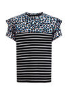 T-shirt de mélange de viscose regular fit à motif et ruchés. Modèle à col rond et manches courtes.