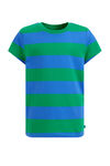 T-shirt de coton regular fit à rayures. Modèle à col rond et manches courtes.