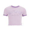 T-shirt slim fit en mélange de coton élastique avec broderie, structure côtelée et col rond. Le modèle cropped à manches courtes à bords contrastés.