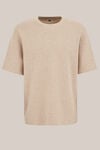 Simple, mais tout sauf ennuyeux. Ce tee-shirt possède une coupe décontractée, un col rond et des manches courtes. Le coloris greige mélangé et la structure gaufrée sur toute la surface lui confèrent un peu plus de profondeur qu’une chemise basique. Sympa et pratique.
