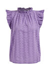 Top de pur coton regular fit à motif ajouré et fermeture boutonnée derrière. Modèle à col rond et mancherons à volants. Non doublé.