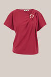Un détail peut faire toute la différence, surtout s'il est doré. Ce top à la coupe regular fit présente un décolleté en V incliné avec une boucle dorée, des manches chauve-souris courtes et un tissu doux. Préparez-vous à recevoir de nombreux compliments. Agréable, n’est-ce pas ?