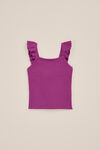 Un nouveau favori ! Ce top à l'encolure carrée et aux bretelles à volants est aussi ludique et joyeux que les enfants. Grâce aux côtes élastiques, il va toujours comme un gant et peut être utilisé aussi bien pour jouer que pour se protéger.