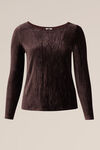 Vous cherchez un top luxueux pour une occasion spéciale ? Ce top près du corps en qualité de velours avec une belle structure présente un col droit et des manches longues. Un rendez-vous avec la mode.