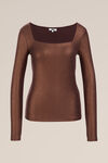 Fais une déclaration ! Ce top ajusté en mélange de viscose avec double couche et revêtement métallique, décolleté carré et manches longues est parfait pour chaque occasion. Pour un look audacieux et tendance.