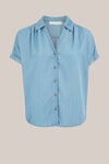 Een luchtige denimlook met een elegante uitstraling. Deze blouse heeft een regular fit, een kraag met V-hals en een knoopsluiting. De korte mouwen hebben omgeslagen boorden voor een trendy touch.