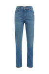 Een 5-pocket high rise mom fit jeans van een katoenmix met stretch. Het model heeft taps toelopende pijpen, knoop- en ritssluiting.