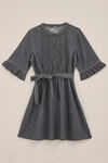 Voor die dagen waarop je moeiteloos stijlvol voor de dag wilt komen. Deze regular fit jurk van katoen heeft een knoopsluiting en een plooidetail aan de voorkant. De jurk is voorzien van een ronde hals, korte mouwen, ruches, en een afneembaar strikceintuur, met een elastische tailleband en een normale kraag voor een stijlvolle afwerking.